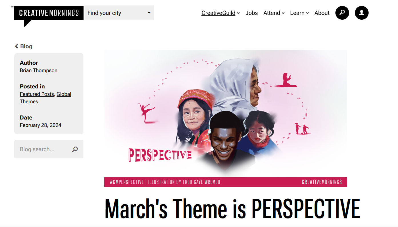 Drafting the concept for perspective was a fairly simple. Creative Mornings wanted three concept sketches exploring the theme to choose from. Once i had laid out my three ideas I sent the sketches as well as a video explaining my thought process, and the styles I considered perusing for each illustration.